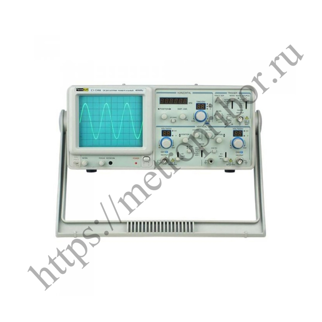 | Режим работы | канал 1 (CH1), канал 2 (CH2), оба канала (DUAL) (попеременно (ALT) /поочередно (CHOP)), сумма каналов (ADD), разность каналов (CH2 INV) |