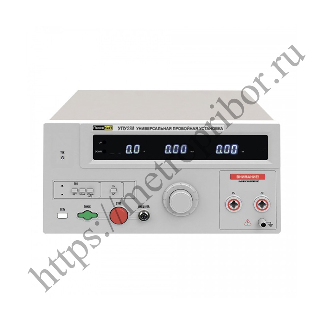 Высоковольтная пробойная установка ПрофКиП УПУ22М предназначена для генерирования напряжения постоянного и переменного тока синусоидальной формы, для проведения испытаний на проверку напряжения пробоя, измерения тока утечки и других показателей эффективности электрической безопасности изоляции силовых кабелей, электроустановок, диэлектриков, средств защиты и т.д. Так же универсальная пробойная установка ПрофКиП УПУ22М может выступать в качестве источника питания высокого напряжения постоянного тока, для проверки характеристик компонентов и приборов.